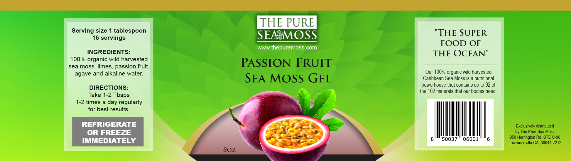 INGREDIENTS: 100% organic wild harvested sea moss, limes, passion fruit, agave and alkaline water.
